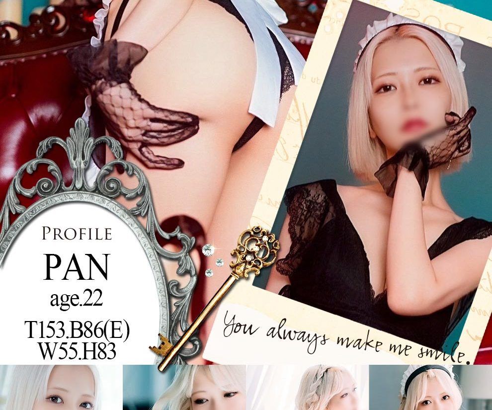 グラビア PAN『パン』 〔22歳〕 ♡ぐらが♡Beyond HOME PAN『パン』 グラビア 写メ日記 プロフィール 口コミ 名前 PAN『パン』 年齢 22歳 3サイズ T153・B86(E)・W55・H83 出勤情報 058-274-5161 営業時間10時~23時(受付9時~22時) お店へ電話 求人